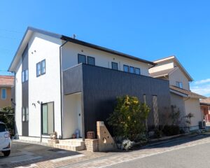 建て替えて新築にした… - 塗り替えたお家の前でみんな笑顔!今治市野間 I様 外壁塗装工事