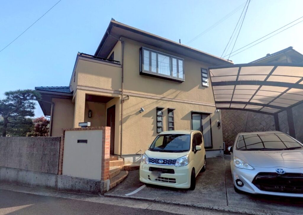 施工前はベージュ単色の外壁でした。色ムラが多少見られました。