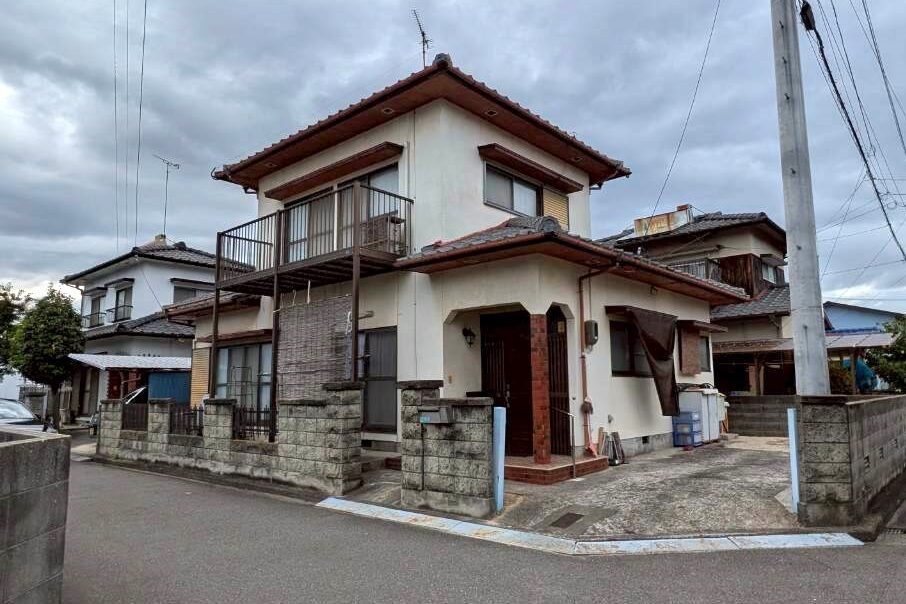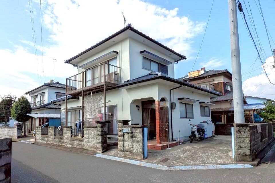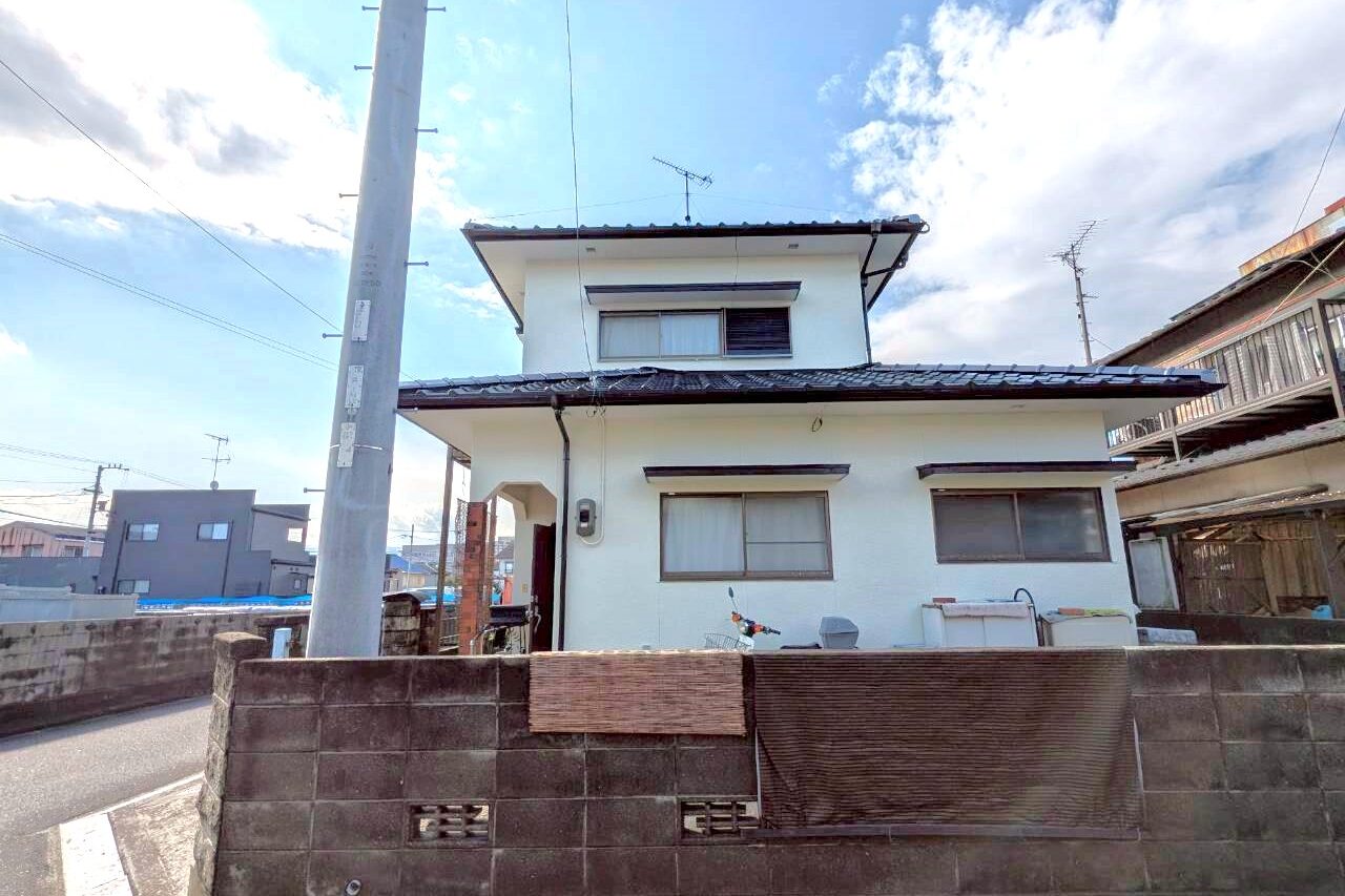 施工前がこちら。外壁には黒ずみや色あせが見られました。まず瓦を新しくしてから屋根も外壁もお塗替えできれいにしていきます。